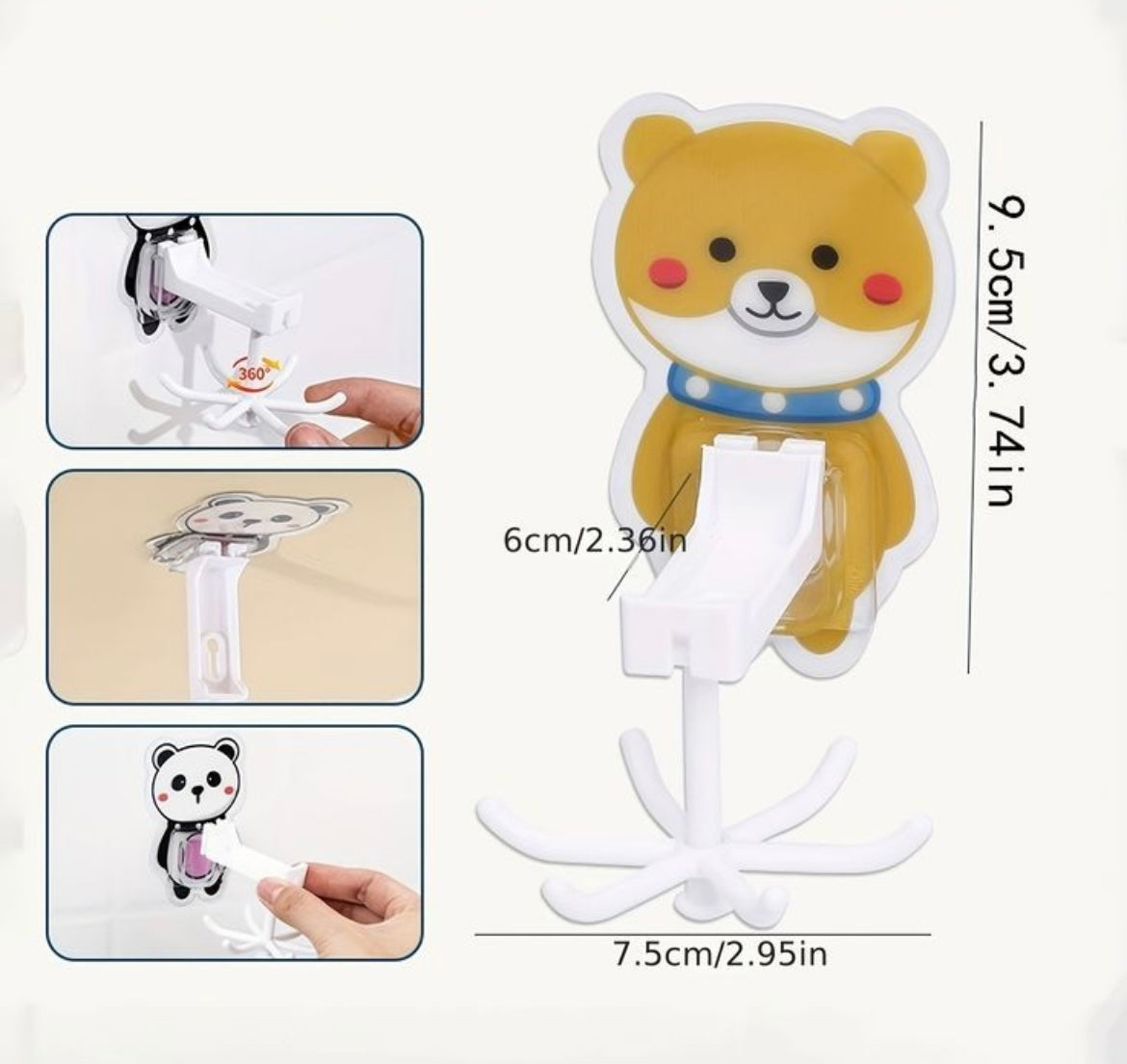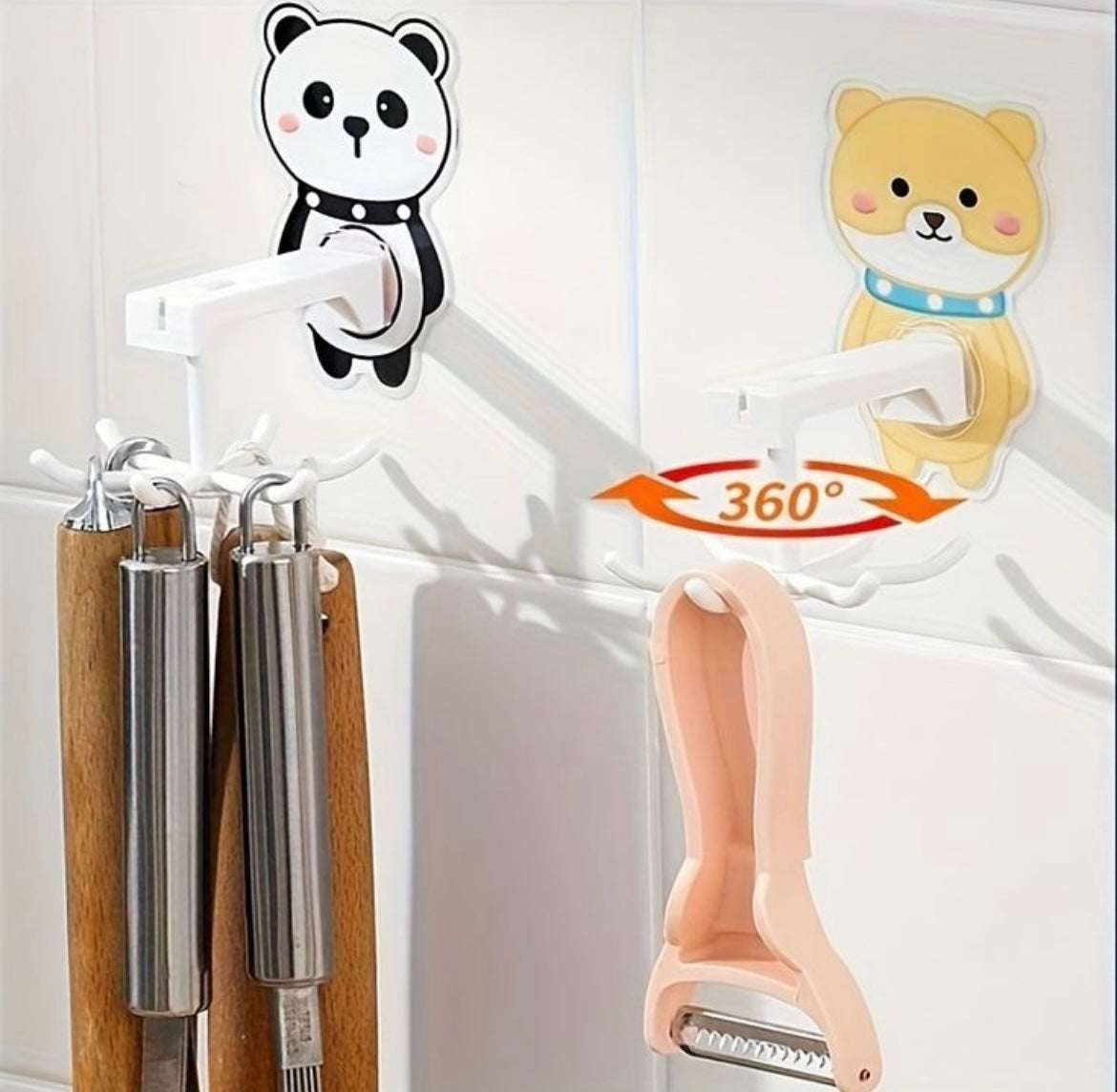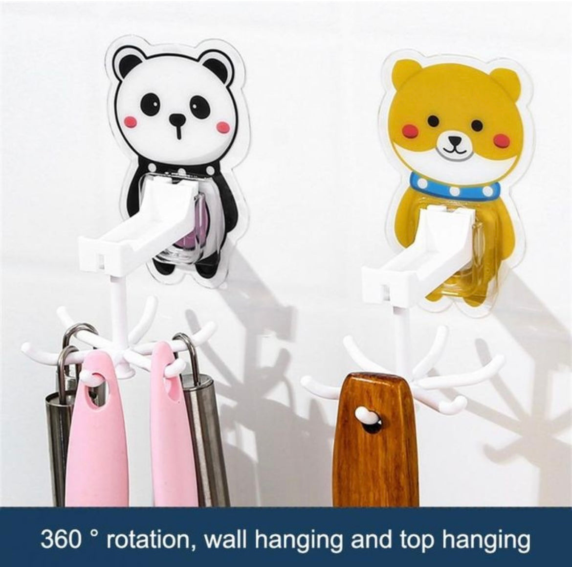 "Add a whimsical twist to organization with our 360-degree rotating cartoon hook! Hang your essentials in style with a playful spin."