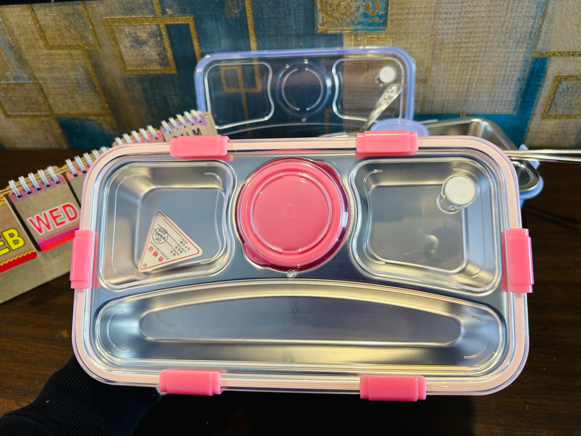 This stainless steel leakproof tiffin box is the perfect solution for anyone looking for a durable and practical way to carry meals. Made from high-quality stainless steel, it is resistant to rust and stains, ensuring long-lasting use. The airtight, leakproof design features a secure, tightly-fitting lid with 6 locking clips. The tiffin box is lightweight, easy to clean, and completely BPA-free, making it a safe and eco-friendly choice. With multiple compartments, it allows you to store different food items separately while keeping everything fresh. Whether for work, school, or travel, this sleek, compact tiffin box offers both style and functionality. Say goodbye to disposable containers and embrace a sustainable, reusable option for your meals.