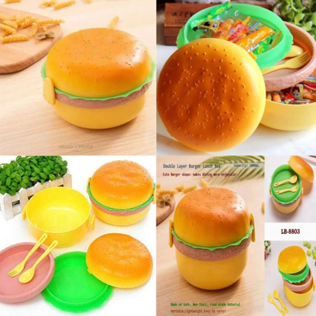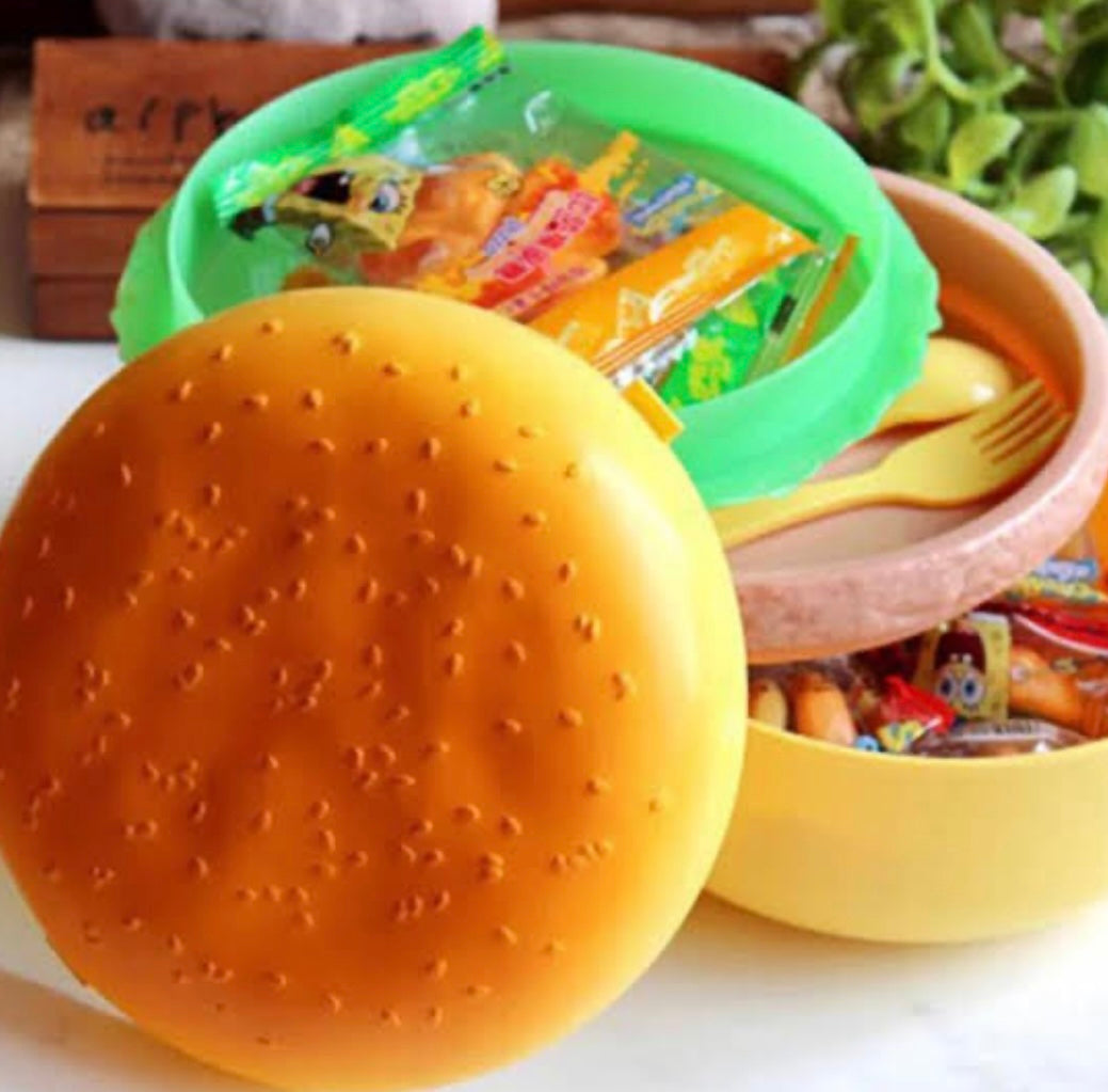 "Take your meals on the go with a side of fun! Our burger-shaped tiffin box is the perfect blend of whimsy and practicality."