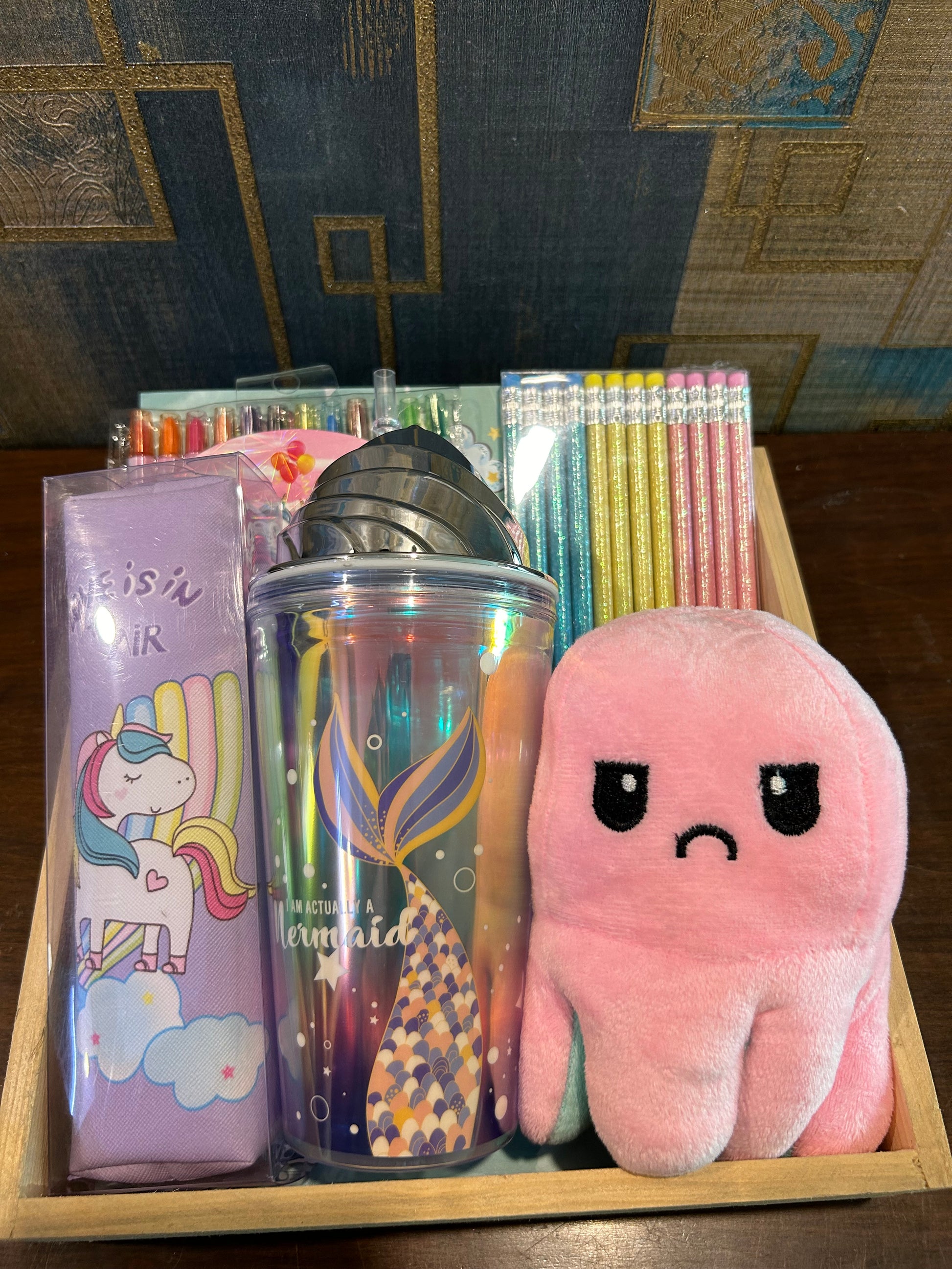 Includes Mood Octopus, Mermaid Sipper, Unicorn Starionery Pouch, Glitter Pencils Pack, Rolling Crayons and Colouring Book
