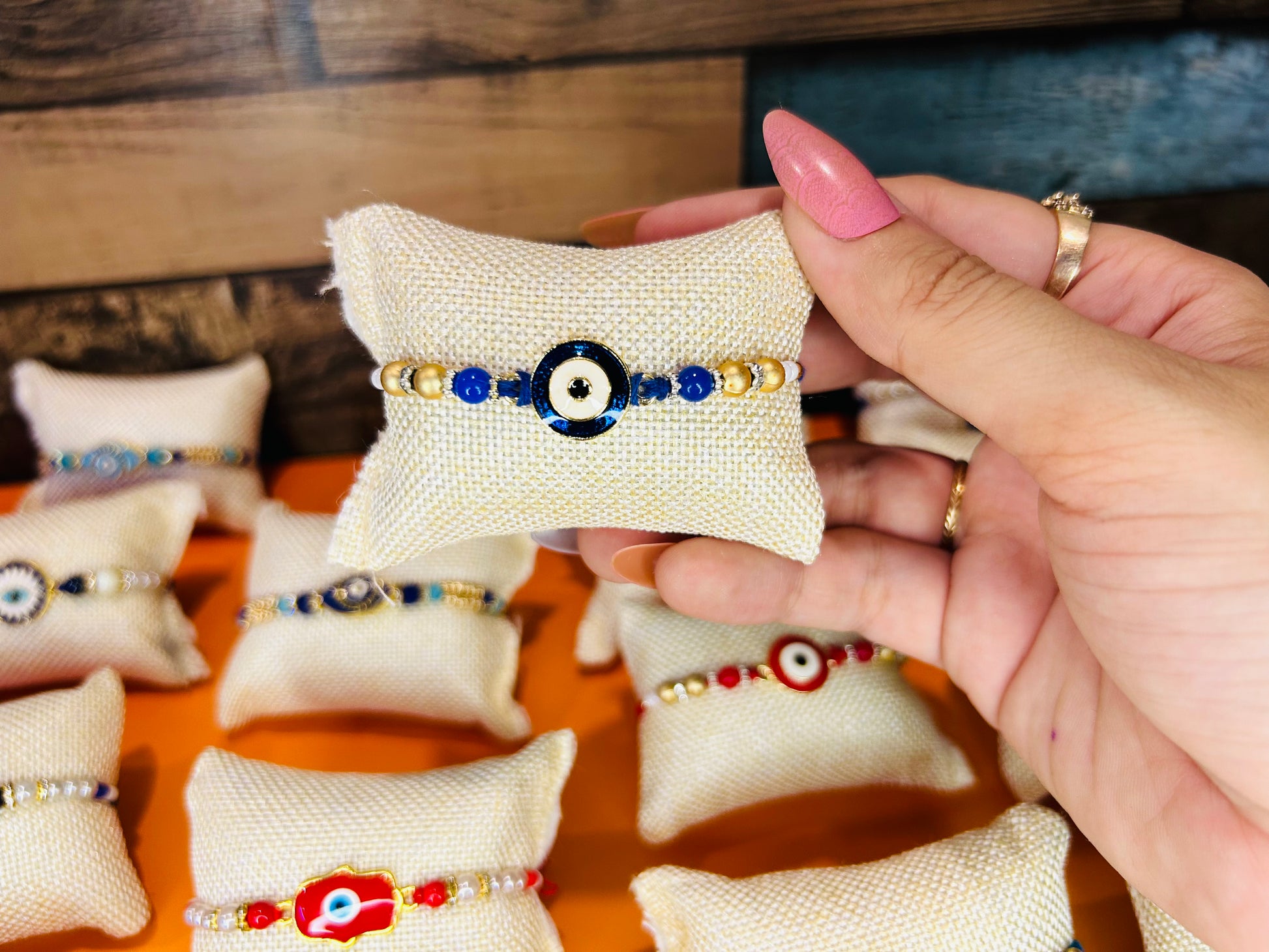 "Protect your loved ones with our Evil Eye Rakhi - a symbol of luck and warding off negativity during festivities."