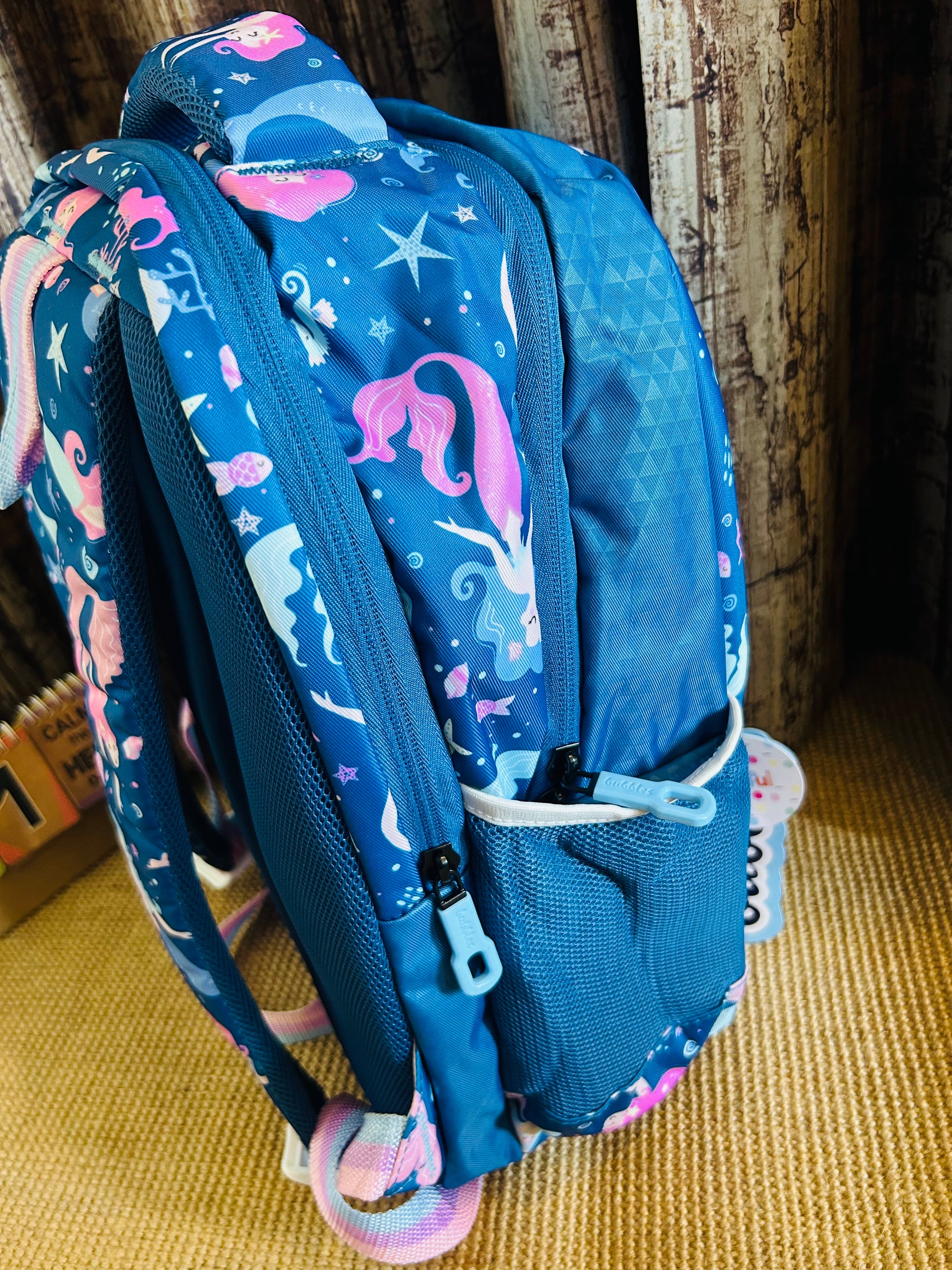 Swimming through the school day with my mermaid vibes.Embark on a daily aquatic adventure with the enchanting mermaid school bag that accompanies me through the sea of books and lessons. Its shimmering scales and iridescent hues mirror the magic of an underwater realm, making each journey to school a whimsical escapade. With ample pockets to store treasures and a splash of mermaid charm, this bag is not just a vessel for textbooks but a portal to an imaginary ocean where learning becomes an enchanting voyage.