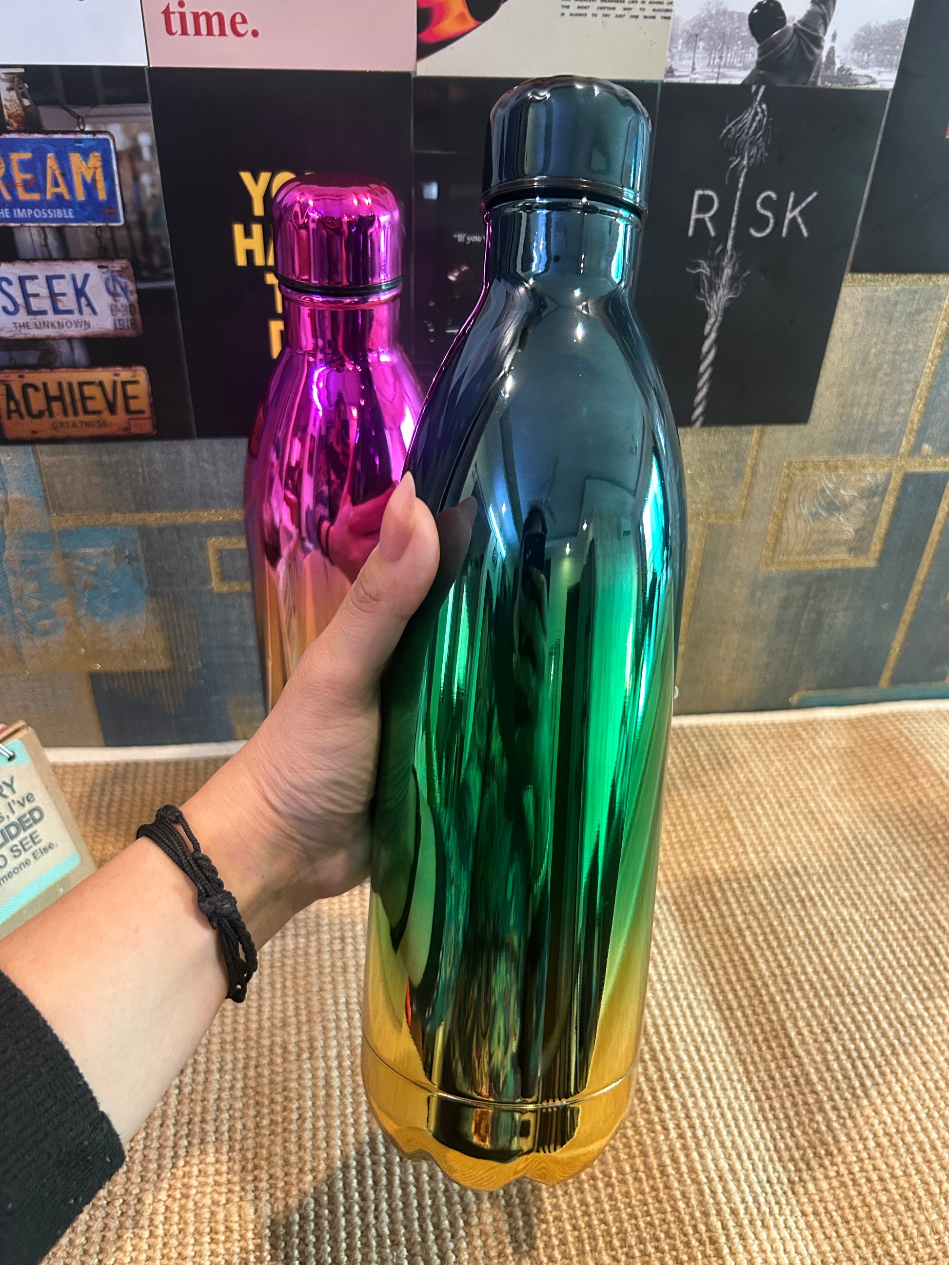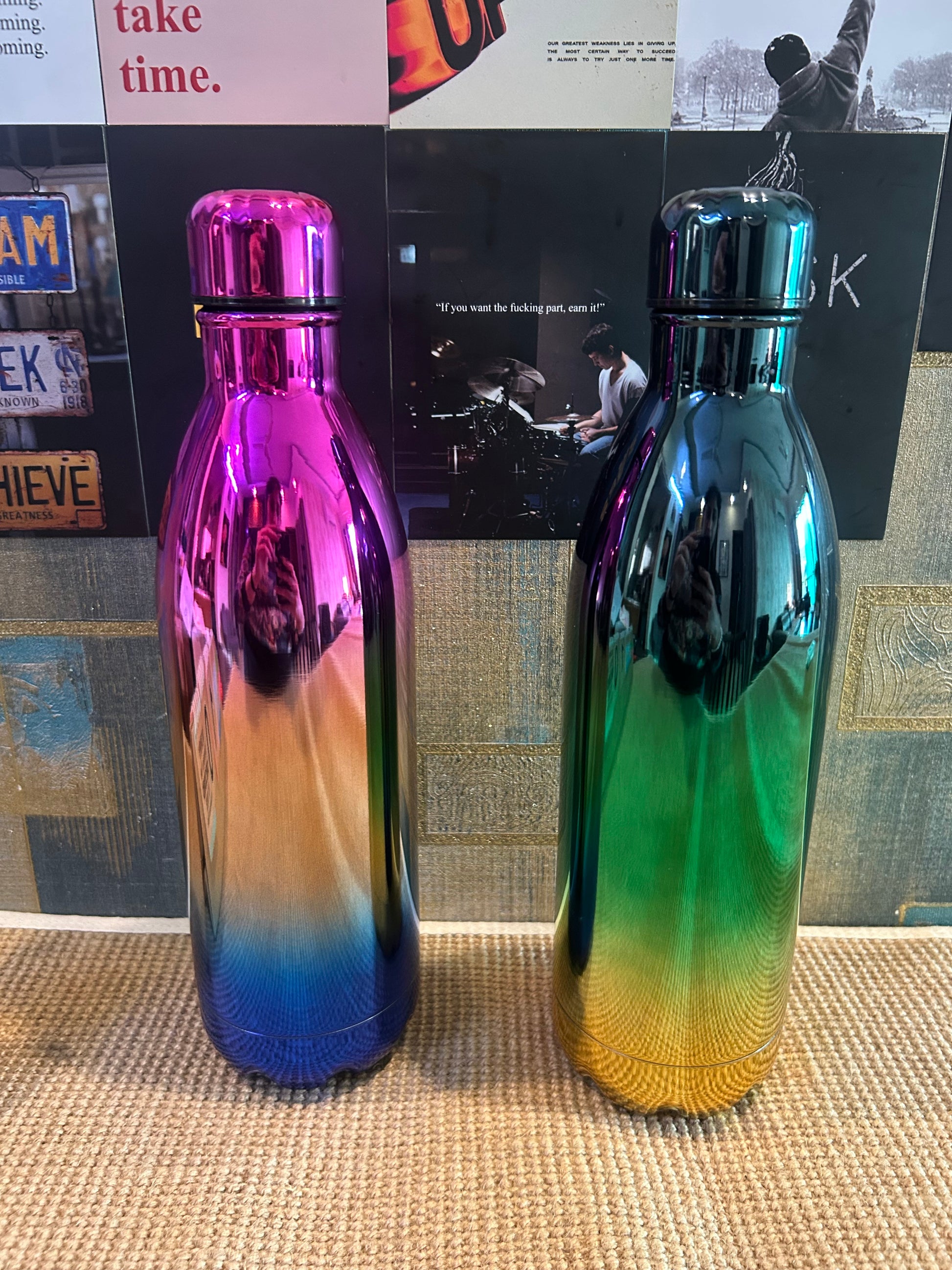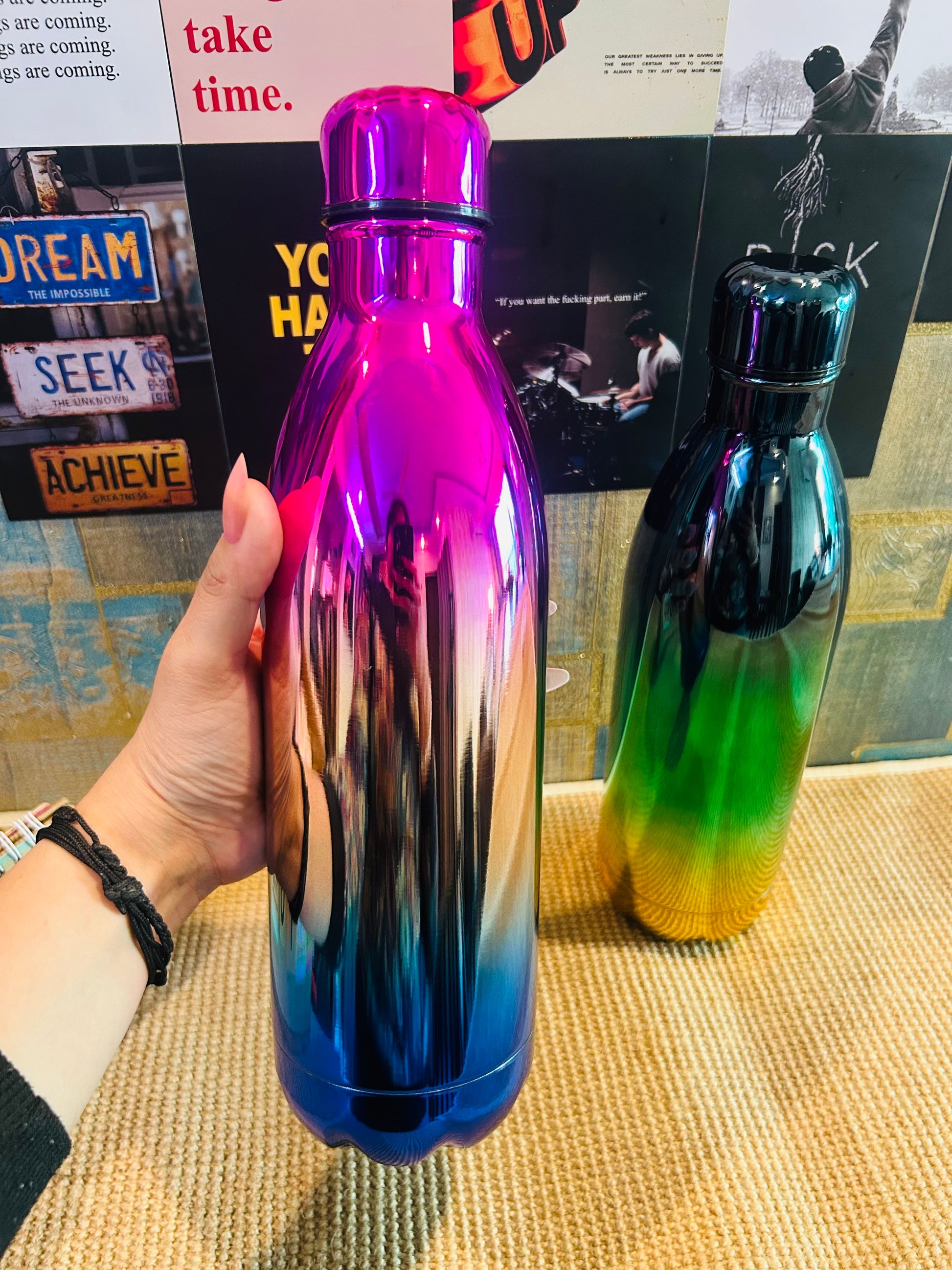 Shine bright with every sip – stay refreshed in style with a metallic chrome insulated bottle.