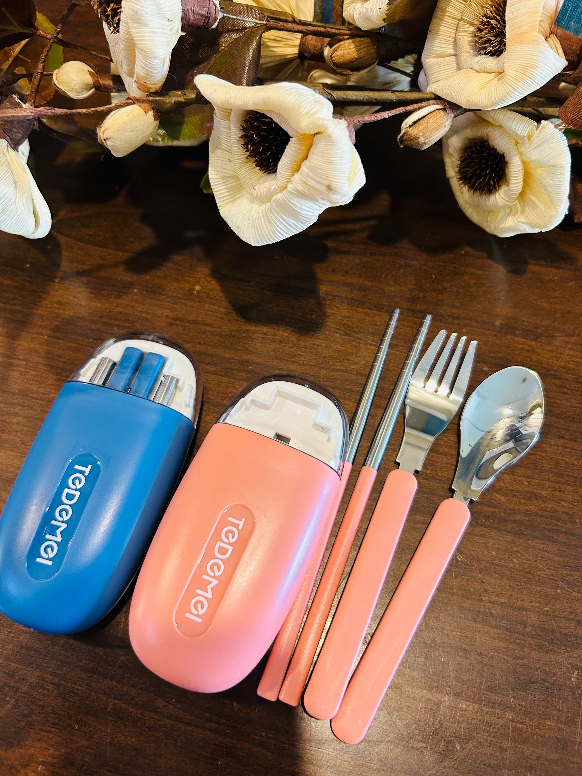 Elevate your on-the-go dining experience with this sleek, portable stainless steel cutlery set – durable, eco-friendly, and perfect for every meal, anywhere!