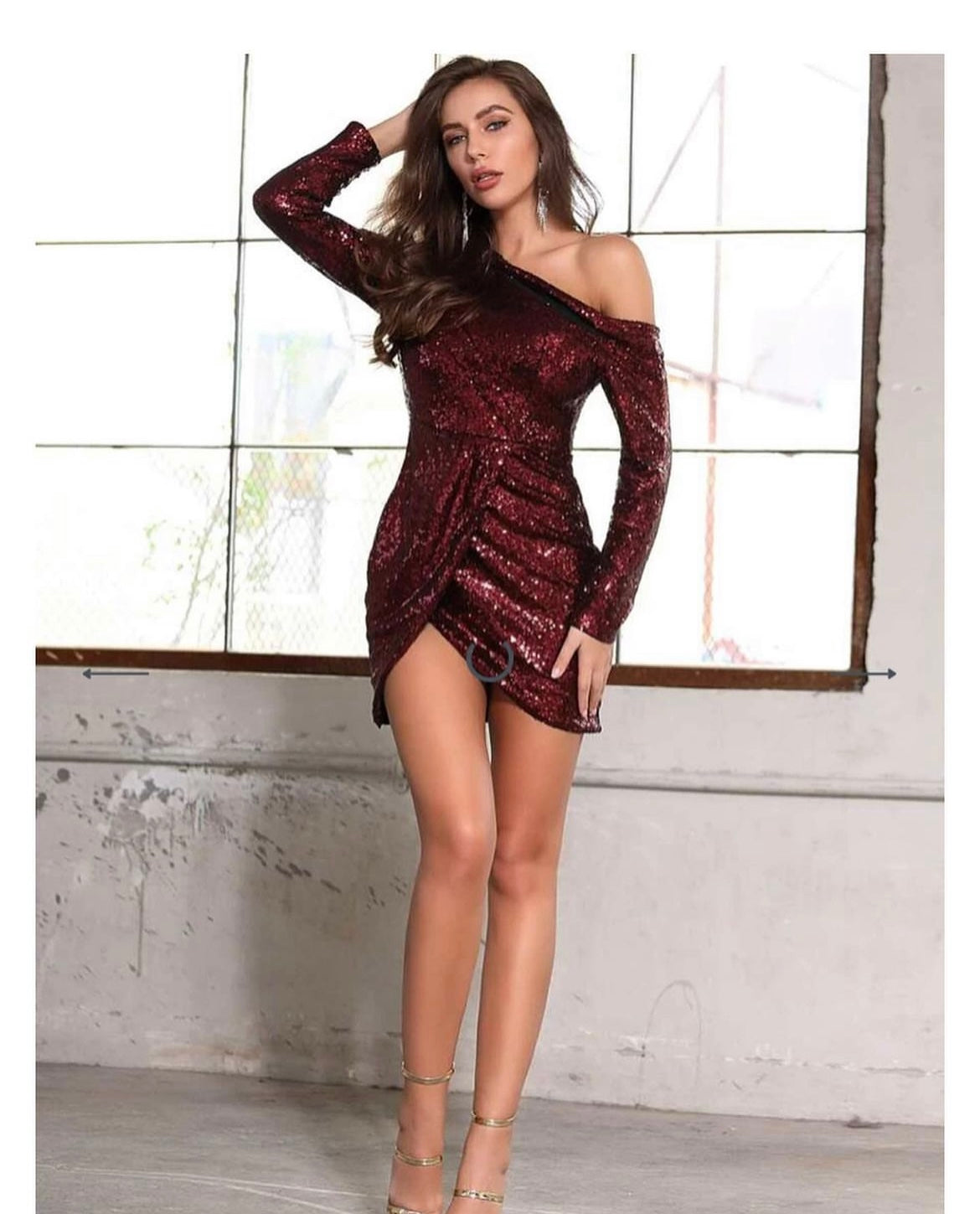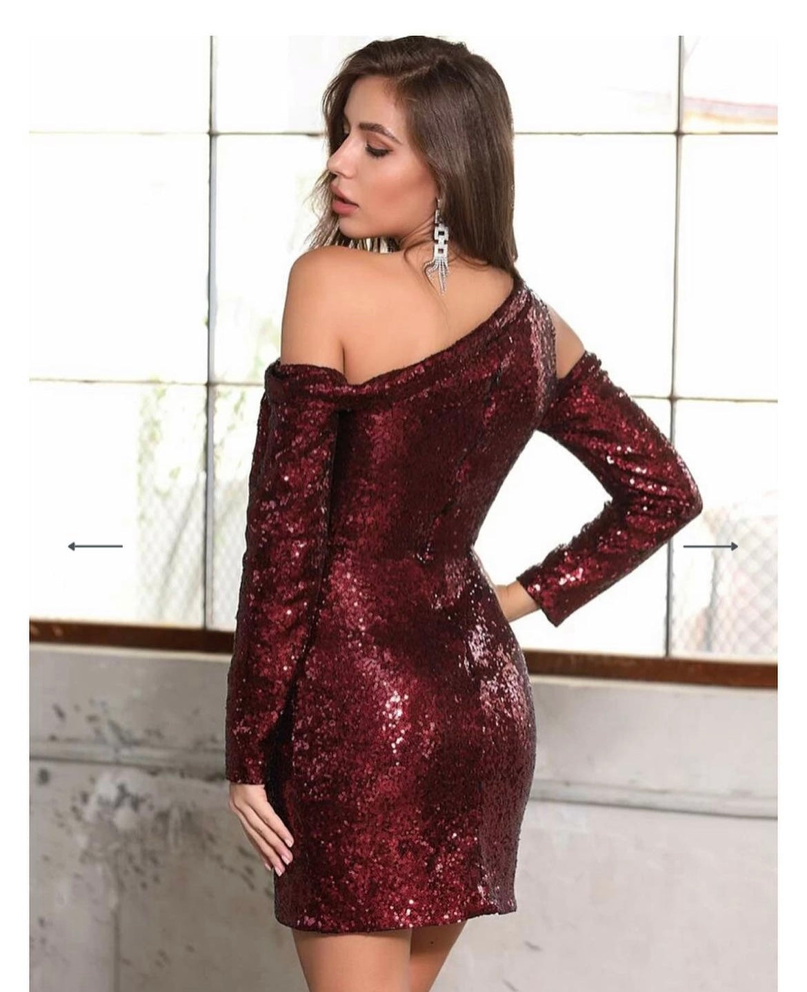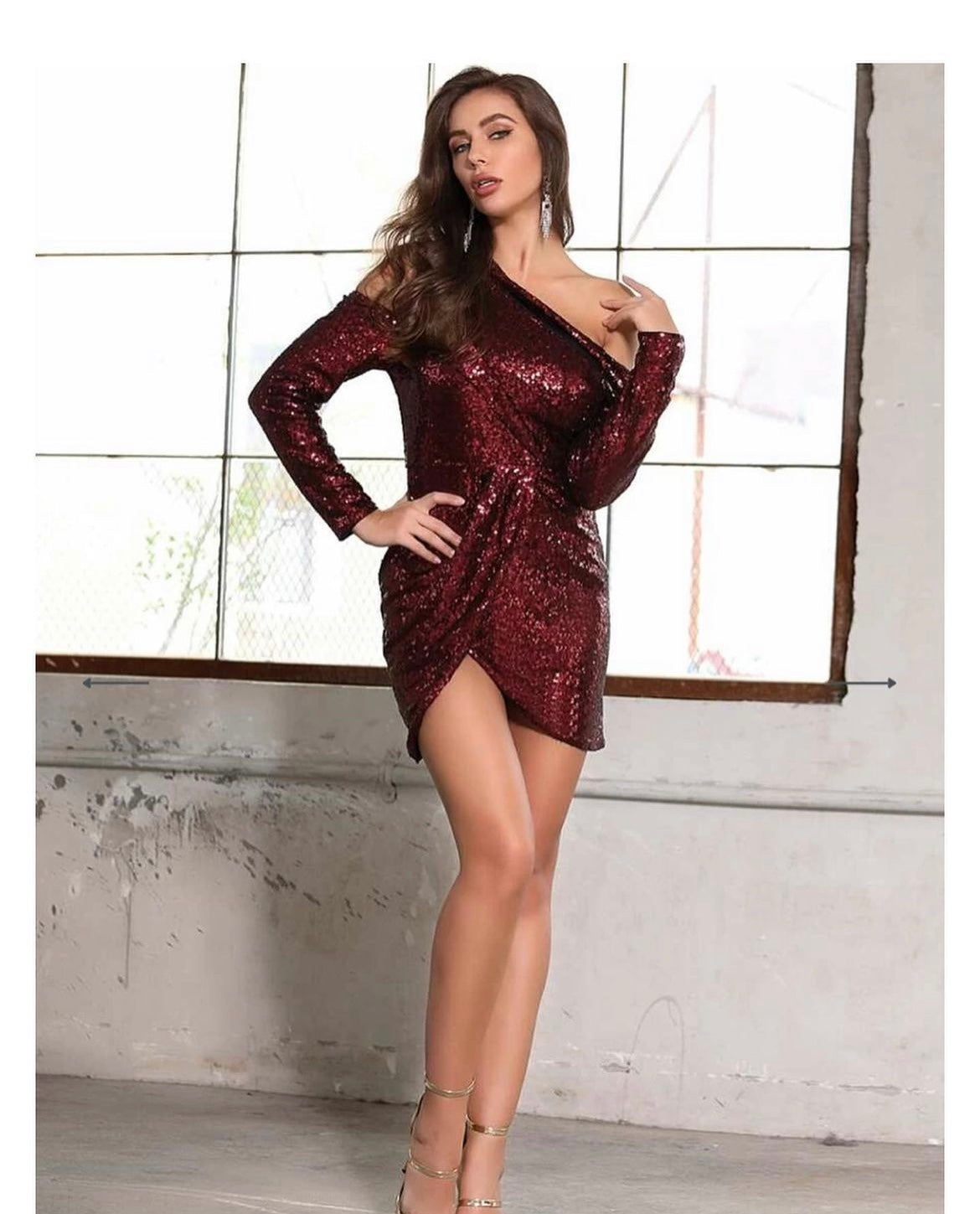 Shein DKRX Asymmetrical Neck Zip Back Sequin Wrap Dress