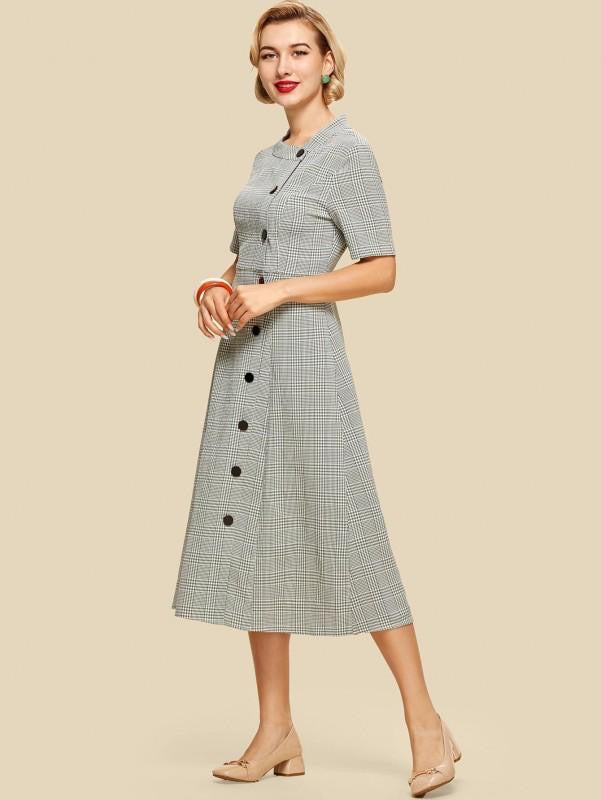 Shein Fit and Flare Button Up Plaid Dress(Fits Upto 34 Bust)