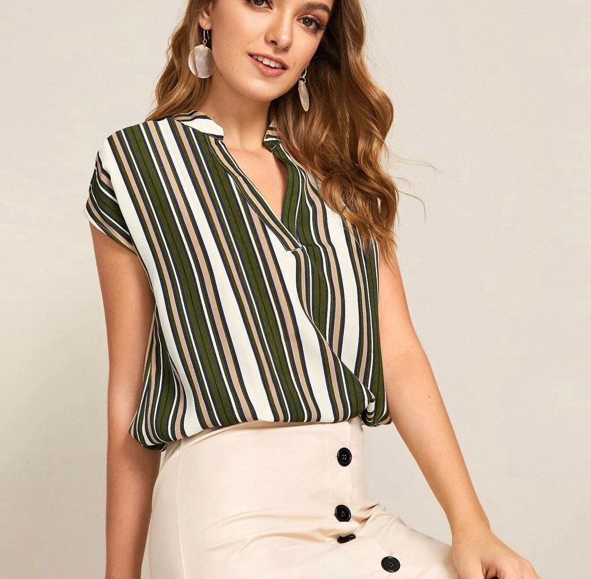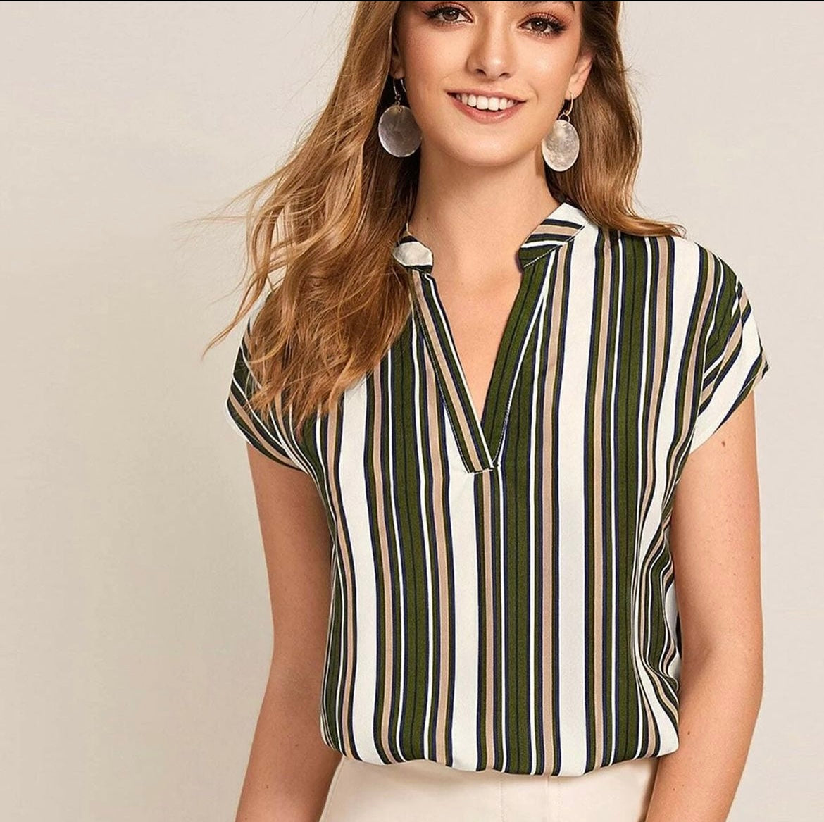Shein Notch Neck Batwing Sleeve Stripped Top(Fits Upto 38 Bust)