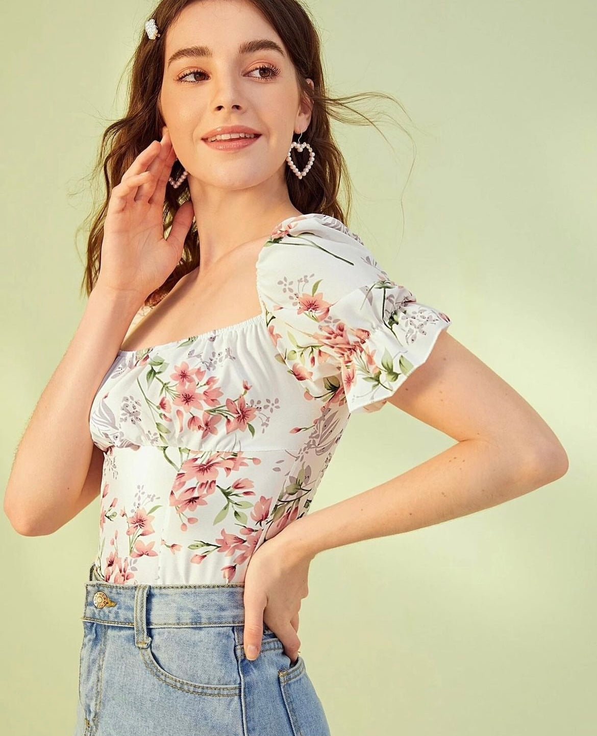 Shein Square Neck Floral Print Blouse
