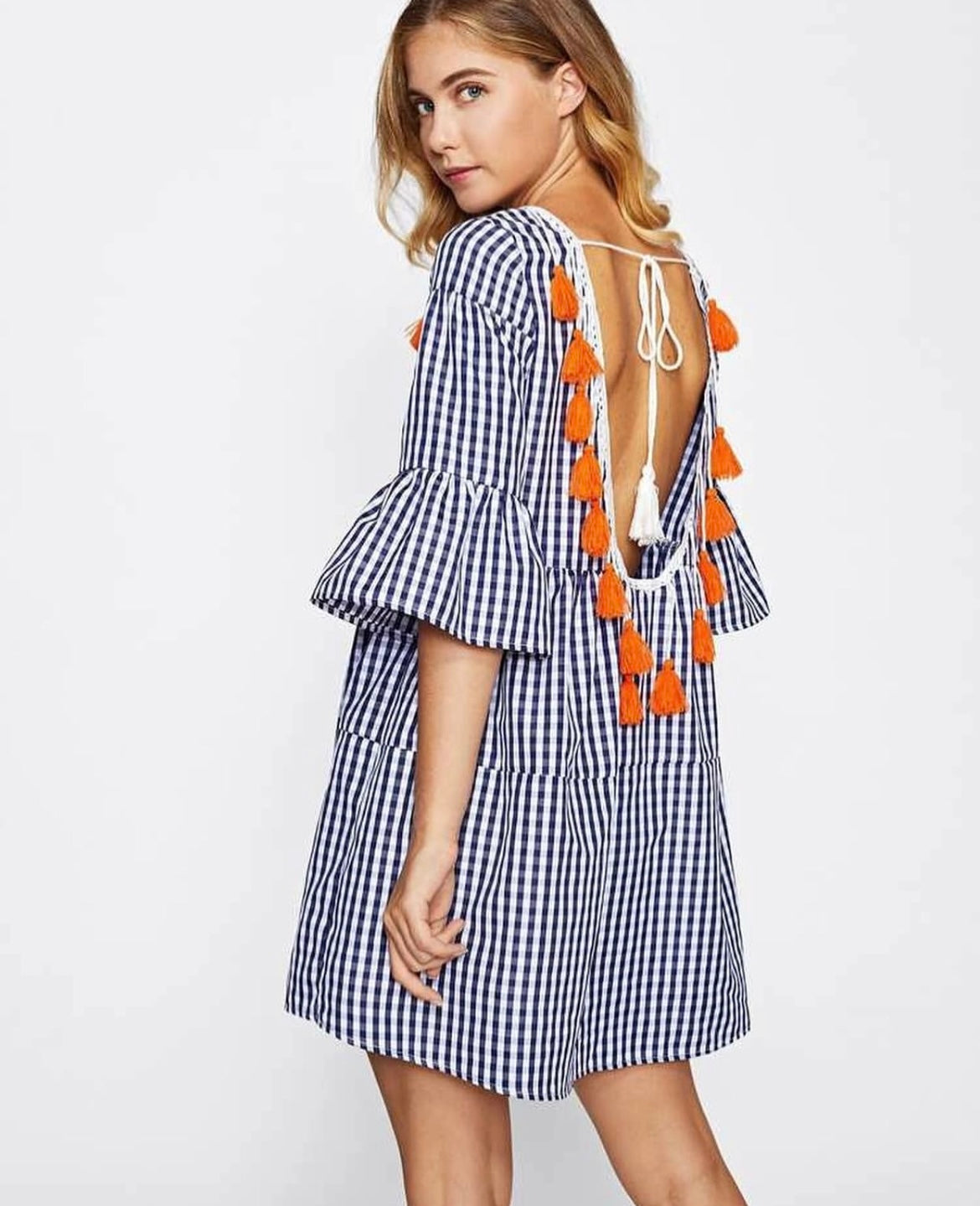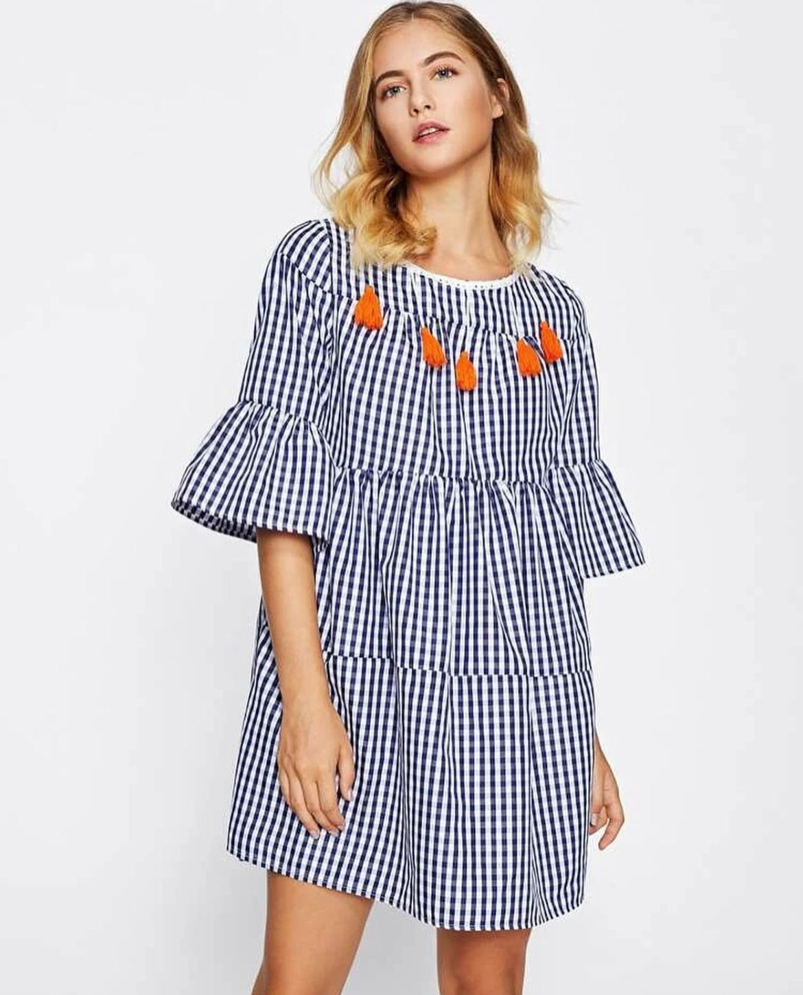 Shein Tassel Tied Open Back Tiered Ghingham Dress