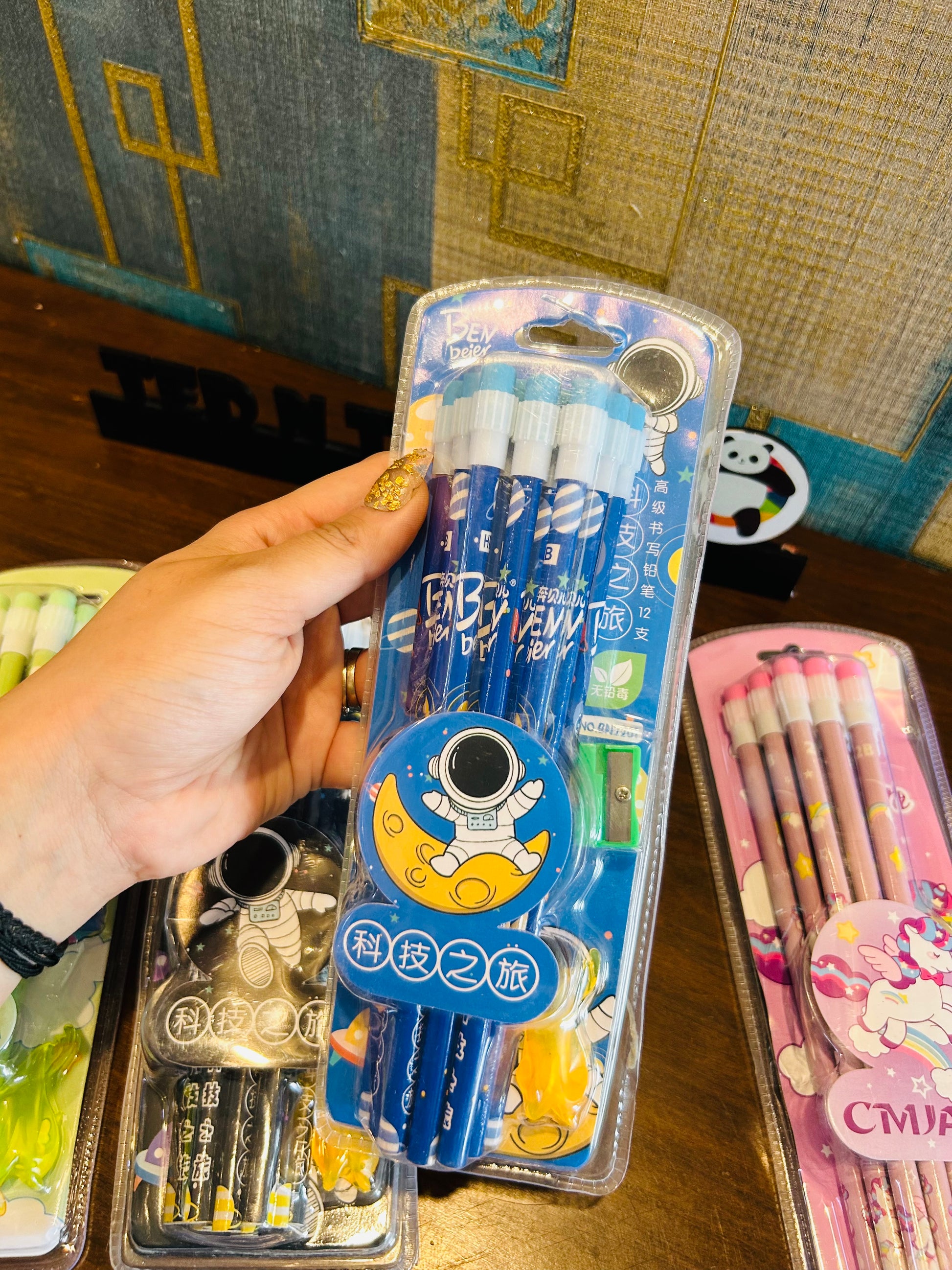 "Explore the galaxy of creativity with our cosmic space pencil set – perfect for out-of-this-world ideas!"