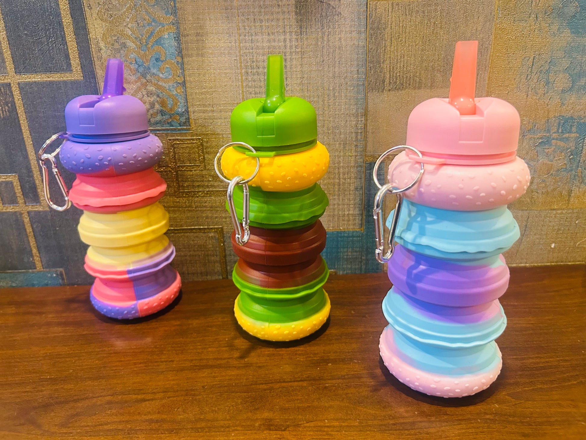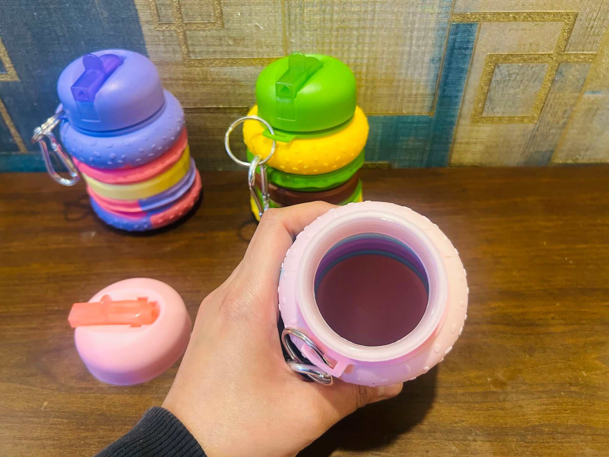 Expandable and Compact: The silicone material used in the bottle allows it to expand and collapse, making it easy to adjust its size and save space when not in use. This feature is particularly useful for travel or when packing in a backpack or lunchbox.