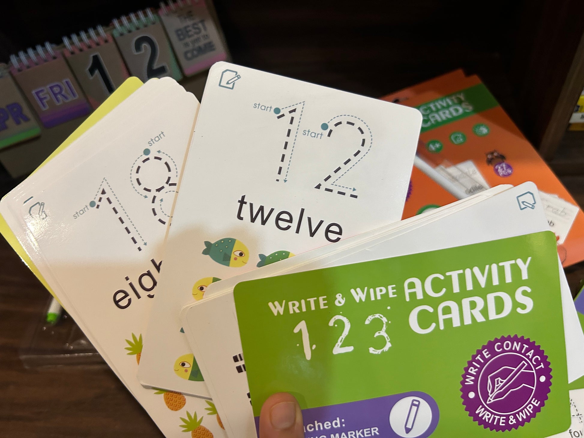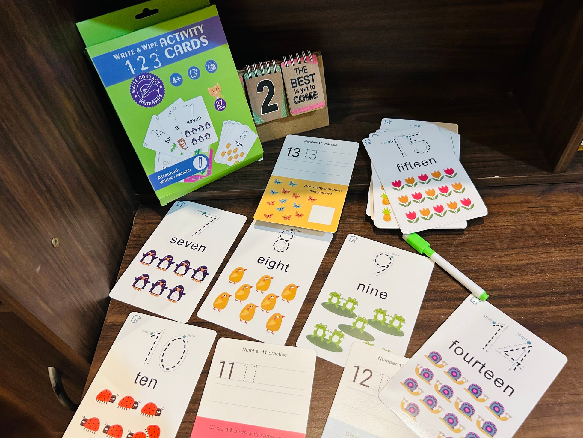 Kids get the practice they need to learn the numbers and master printing skills — with cards, illustrated numbers/words cards! 26 reusable, write & wipe cards, dotted starter lines that let children trace. plus handy baselines so kids can practice printing on their own. It is a great way for children ages 3 and up to learn the and practice fine motor skills.