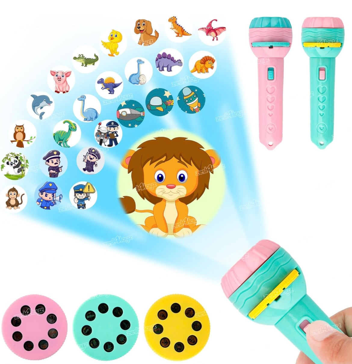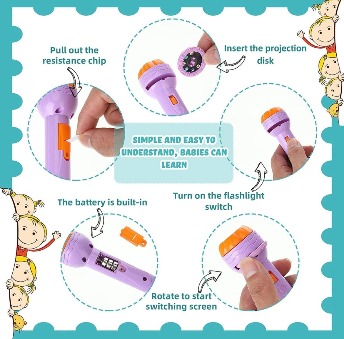 - Children's slide projector torch: Projectors on the market, projectors torch have more pictures and more vivid colours. Different pictures and 3 groups of themes, just turn the lens head to focus, and let your child enter the magical animal world and plant perception!