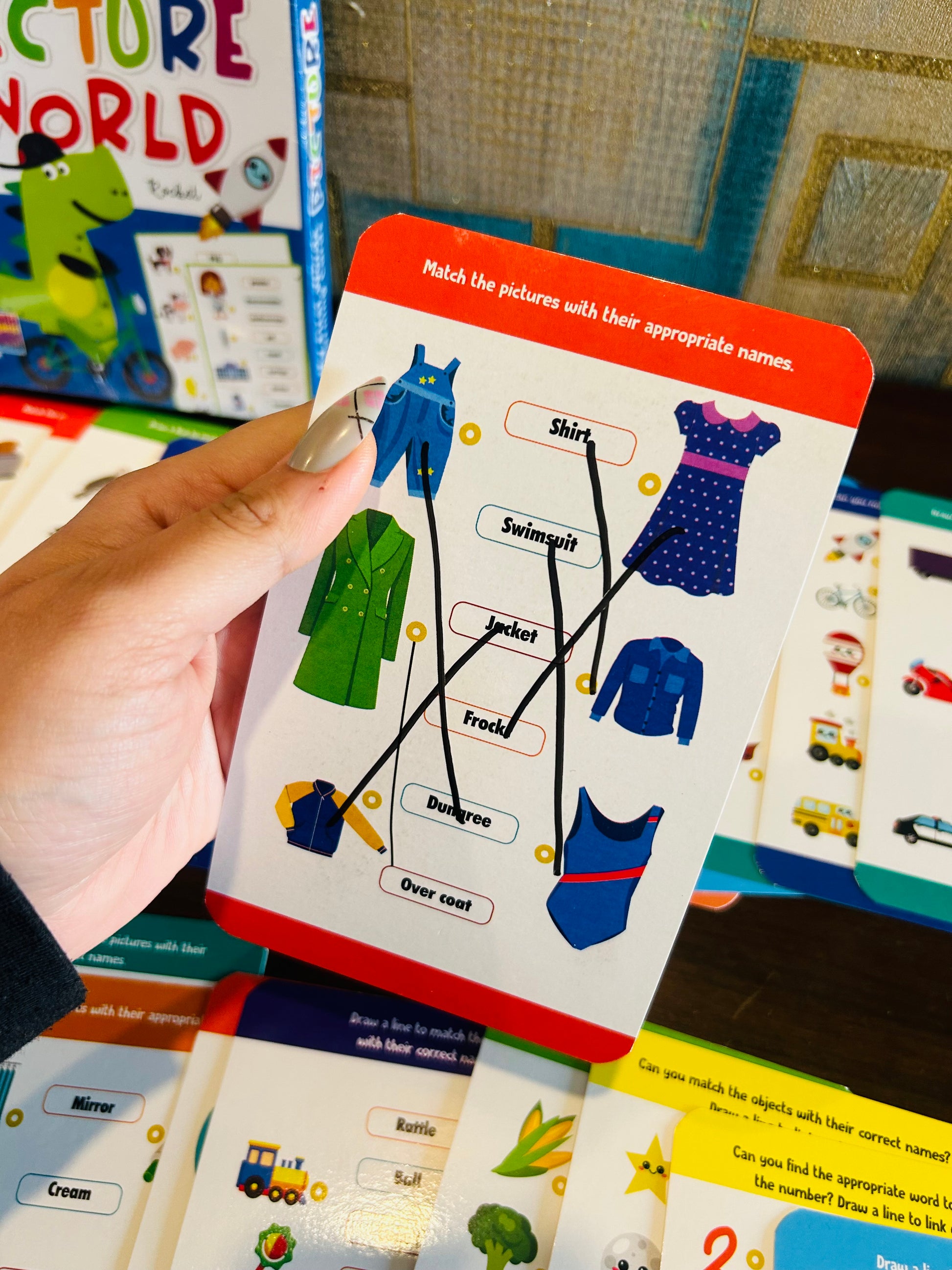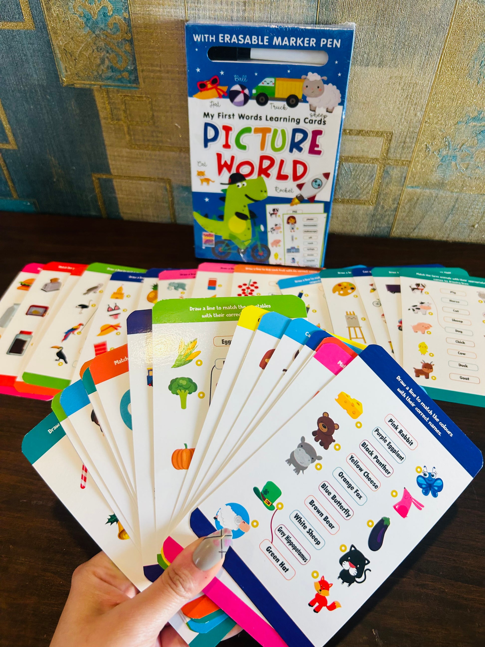 Visualise , learn, and connect – Picture World flash cards make every lesson an adventure. It comes with erasable marker, match the following picture with other picture. You can eraser after play and reuse them later as well. Best for your kids to improve their general knowledge and make their day screen free.